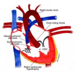 Tetralogy of Fallot (TOF) is one of the most common congenital heart disorders (CHDs). This condition is classified as a cyanotic heart disorder, because tetralogy of Fallot results in an inadequate flow of blood to the lungs for oxygenation (right-to-left shunt) (see the following image). Patients with tetralogy of Fallot initially present with cyanosis shortly after birth, thereby attracting early medical attention.